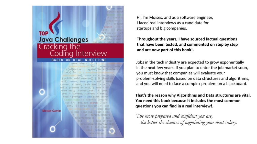 That’s the reason why Algorithms and Data structures are vital. You need this book because it includes the most common questions you can find in a real interview!.